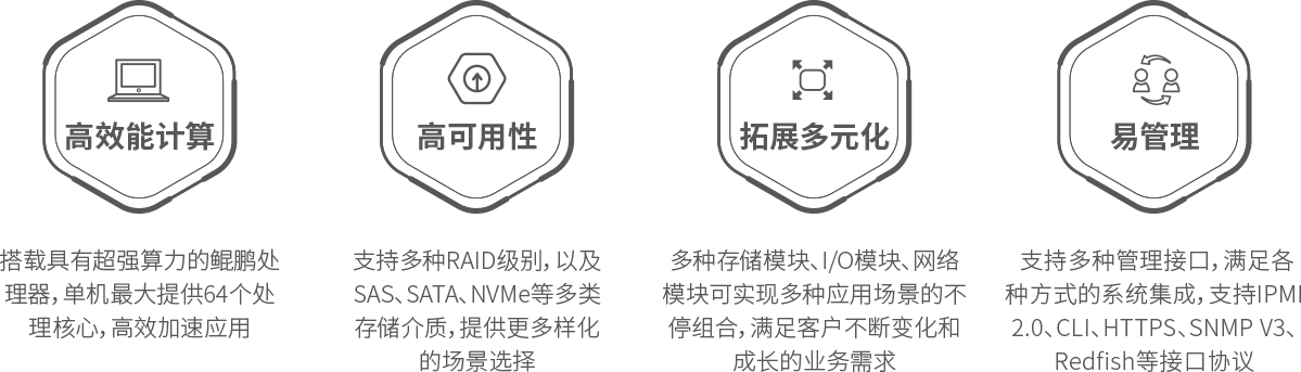 金荣中国 KunTai R721高密服务器是神州数码基于鲲鹏基础硬件推出的新一代高密度计算设备。其具备高效能计算、安全可靠与开放生态优势。